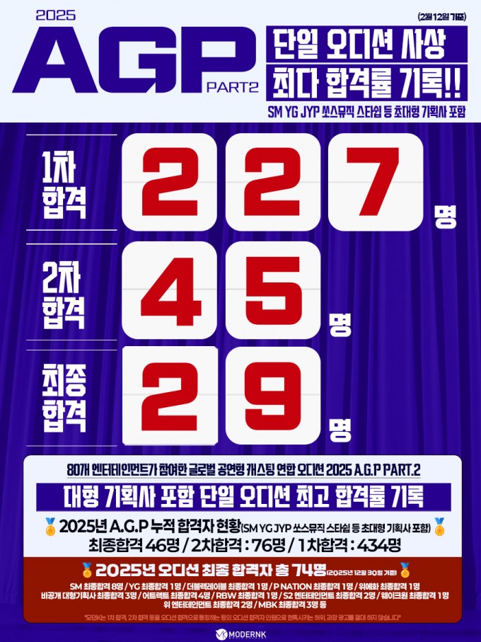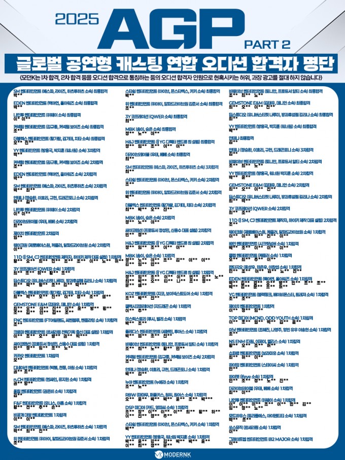 2025 A.G.P PART.2 (공연형 캐스팅 연합오디션) 합격자 현황 (2026년 1월 25일 기준)